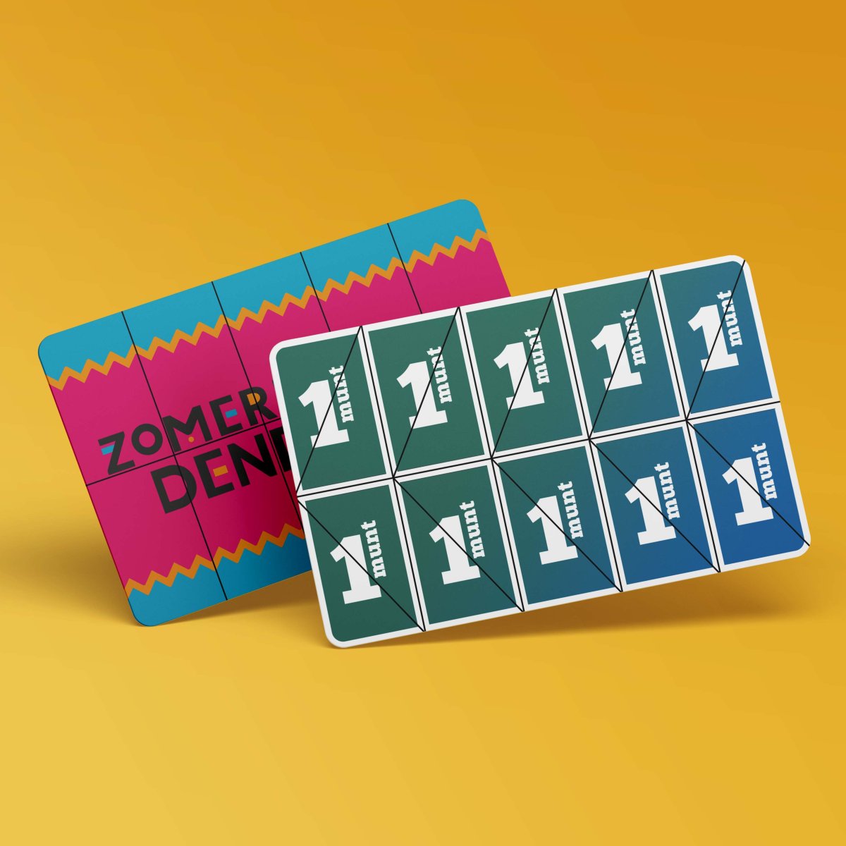 Voor festivals, feestjes en evenementen is het interessant en veilig om munten maar één keer te gebruiken. Deze munten zitten per 10 stuks op een breekmat van creditcard formaat (85,6x54 mm). Handig om in je portemonnee te bewaren of in je broekzak. De muntjes apart kan je telkens in de helft breken wat zeker handig kan zijn voor de prijszetting op je evenement. We kunnen de muntjes bedrukken aan één of beide zijden, in één kleur of meerdere kleuren. De breekmunten vervaardigd uit ons eigen gerecycleerde kunststof.